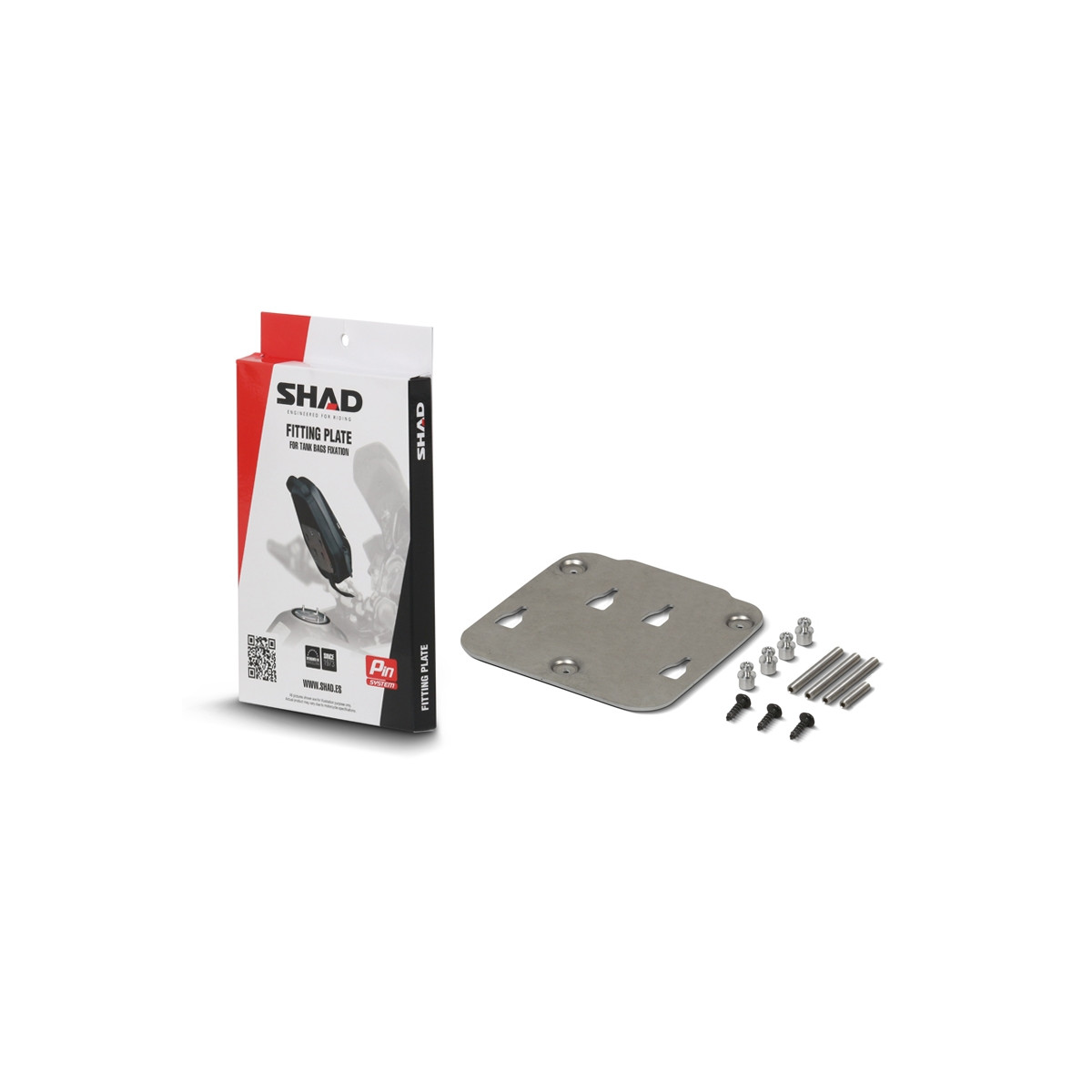 Le système innovant PIN SYSTEM permet de fixer la sacoche de réservoir SHAD PIN SYSTEM sur le bouchon de réservoir de votre moto de façon rapide et sûre. Il est seulement nécessaire de remplacer les 3 ou 4 visses du bouchon du réservoir par des pions discrets et visser la platine à la sacoche.
