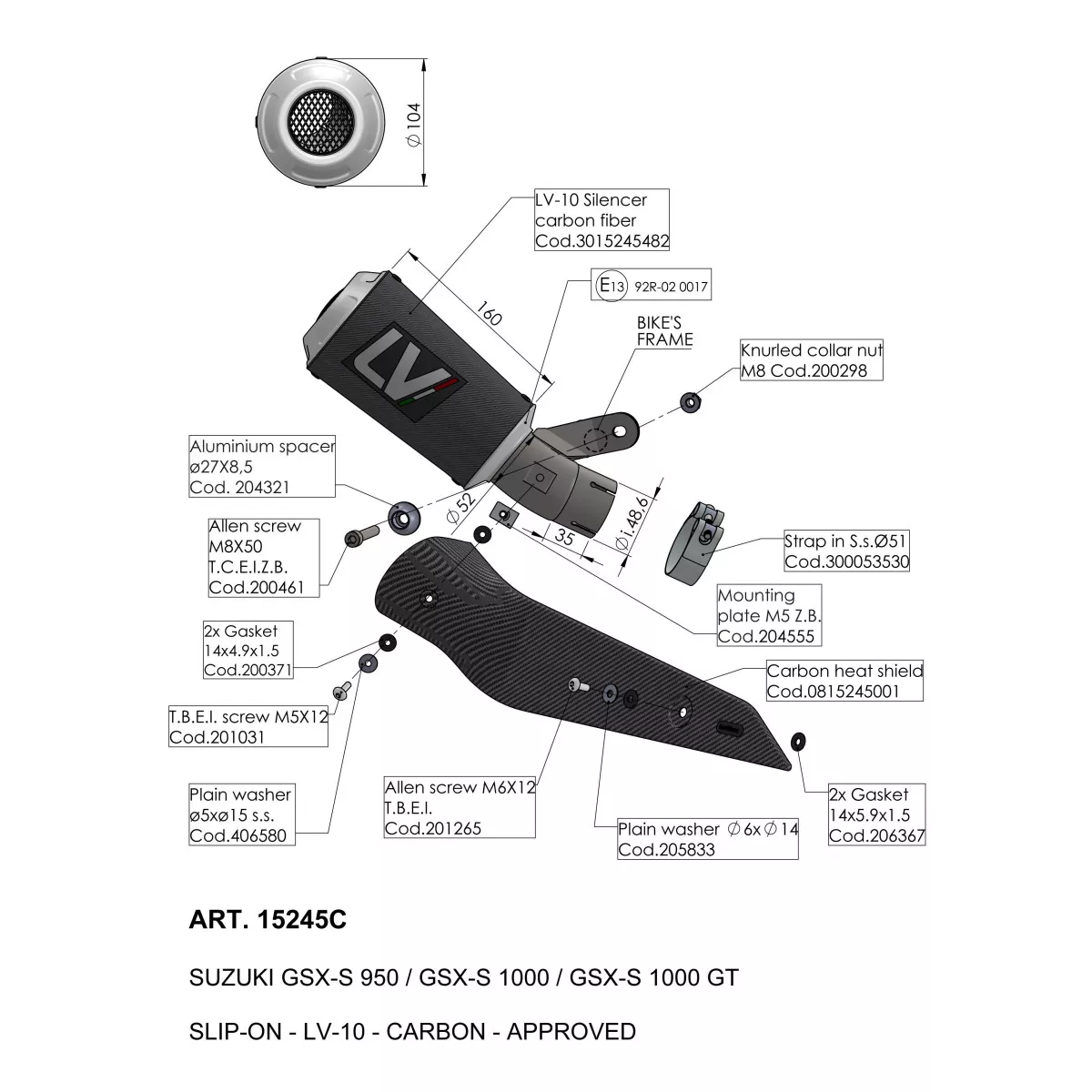 Le LV-10 carbone est le seul dans la gamme LV-10 a être embelli d'une plaque en alu avec le logo LV, jusqu'à présent utilisé exclusivement par LeoVince en compétition, ce qui souligne le lien entre entre le LV-10 carbone et la piste.