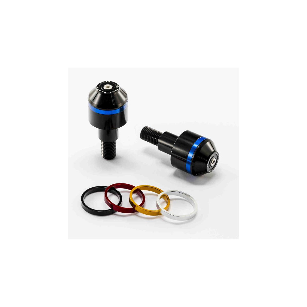 Pièce usinée à partir d’un bloc d’aluminium (pesant seulement 58 g et mesurant 30 mm), elle présente la particularité d’avoir un anneau encastré dans son extrémité ce qui donne une touche de couleur à l’embout finition noire et un max de style à votre moto.