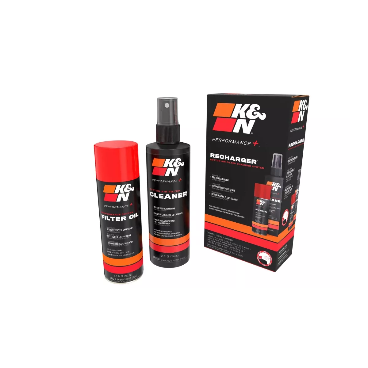 Le kit est livré avec un nettoyant et un spray graissant. Ce kit saura restaurer la totale efficacité de votre filtre à air K&N.