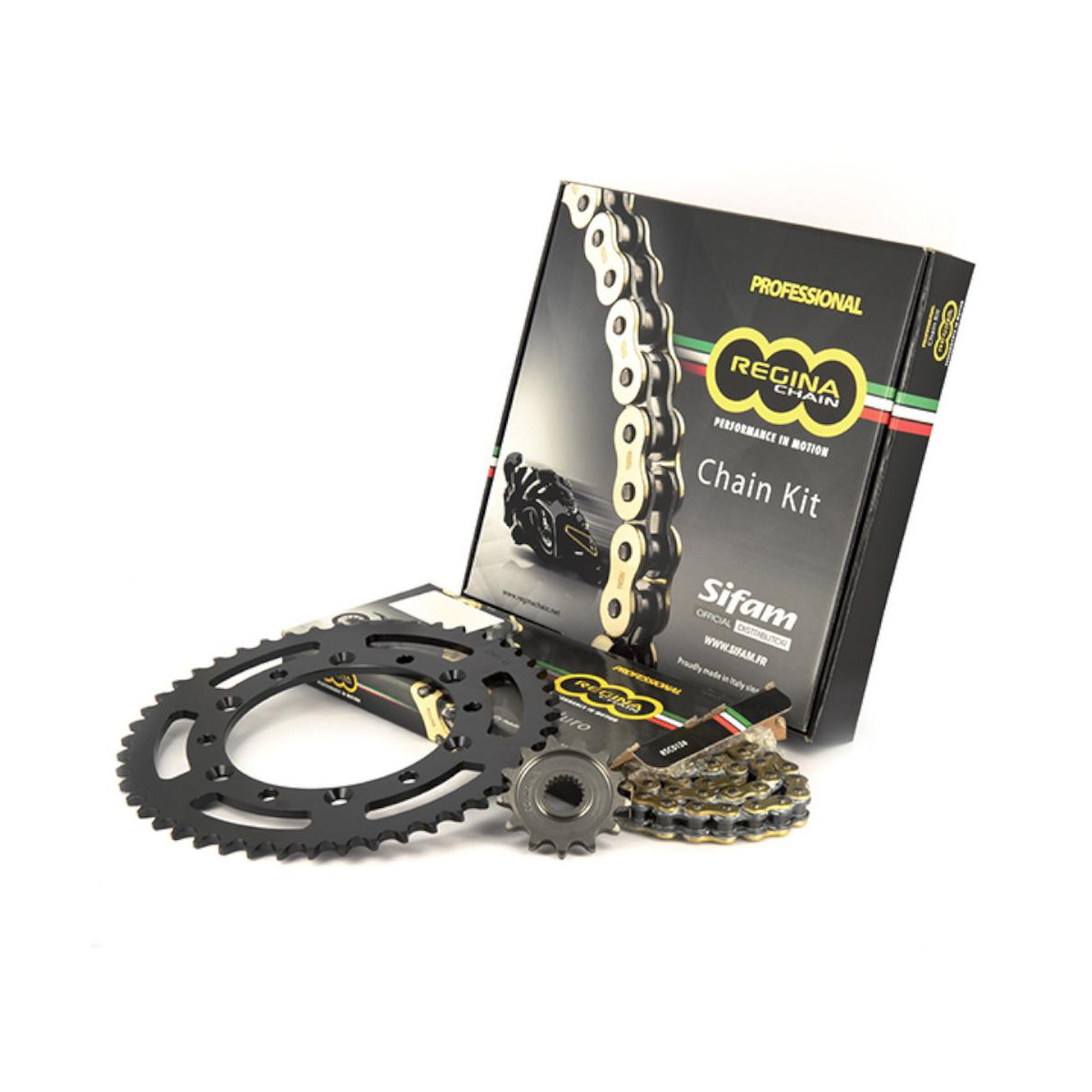 Ce kit chaîne REGINA type origine est conçu pour offrir une transmission simple, efficace et économique, parfaitement adaptée aux motos d’entrée de gamme, anciennes ou destinées à un usage léger.