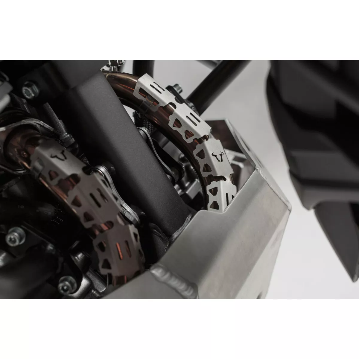 Set de protection spécifique SW MOTECH pour Kawasaki Versys 1000 2018 et +. Il comprend les éléments suivants : Protection de radiateur et Protection de collecteur d'échappement.
