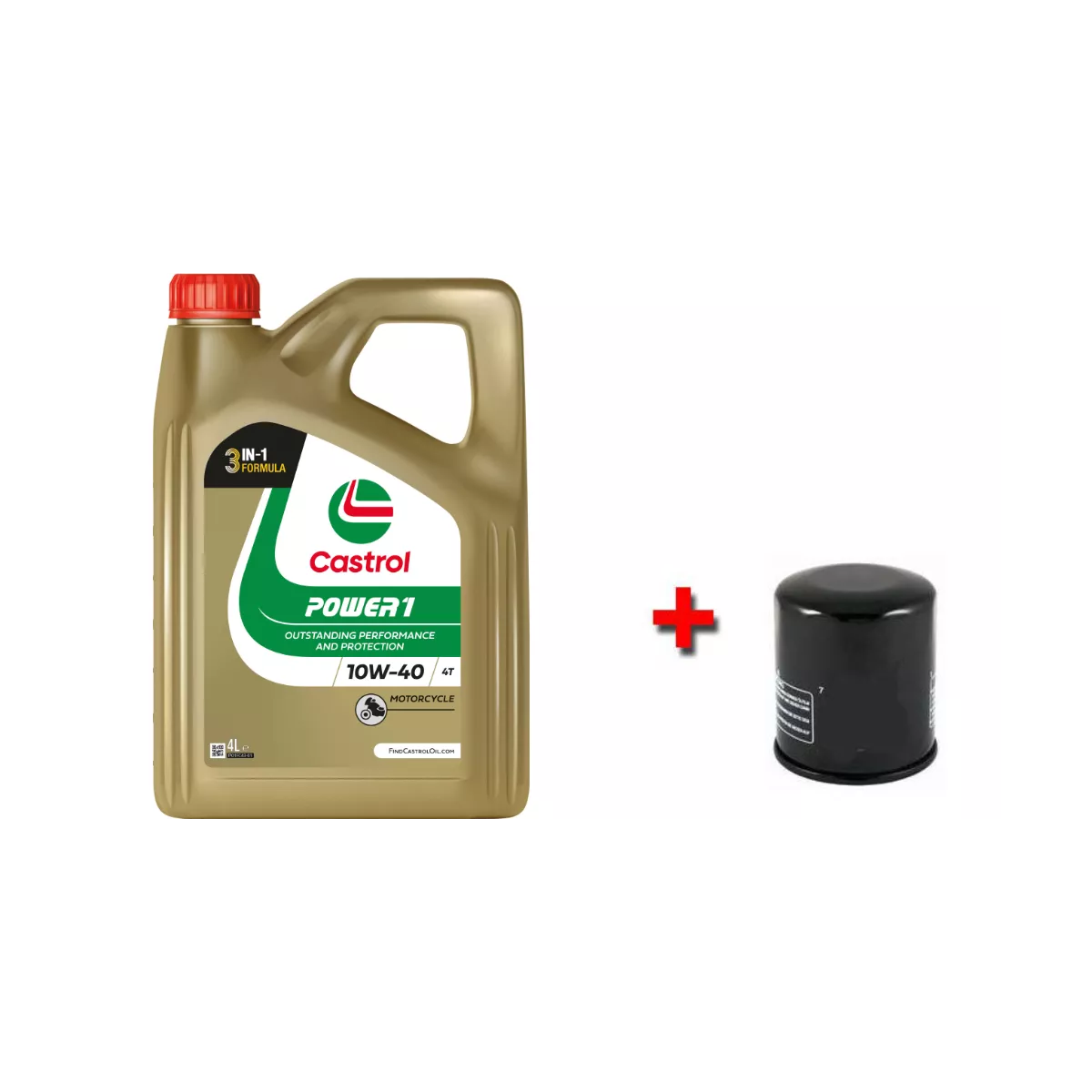 Pack vidange CASTROL pour moto avec un bidon d'huile 4T 10W40 POWER 1 en 4 litres et un filtre à huile offert