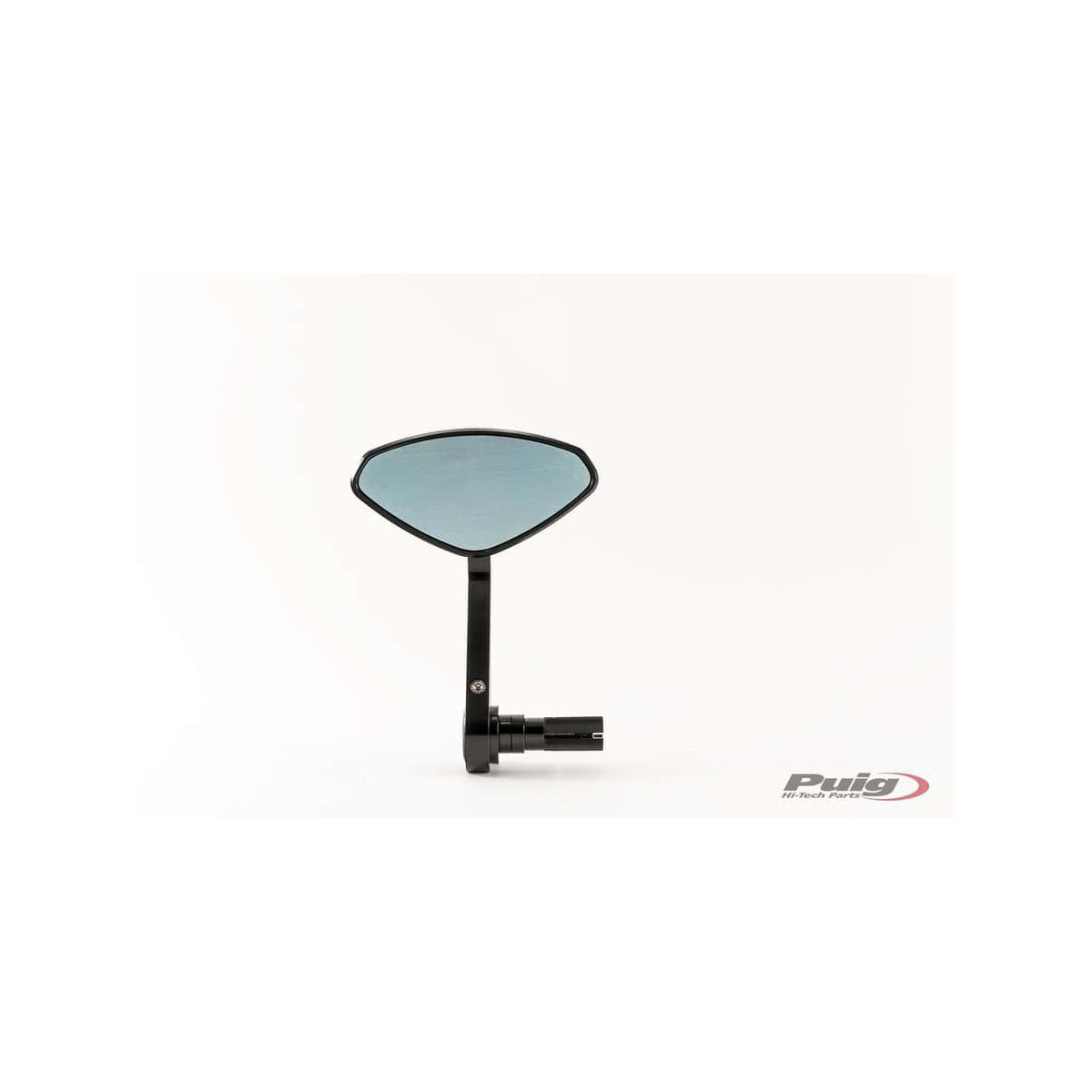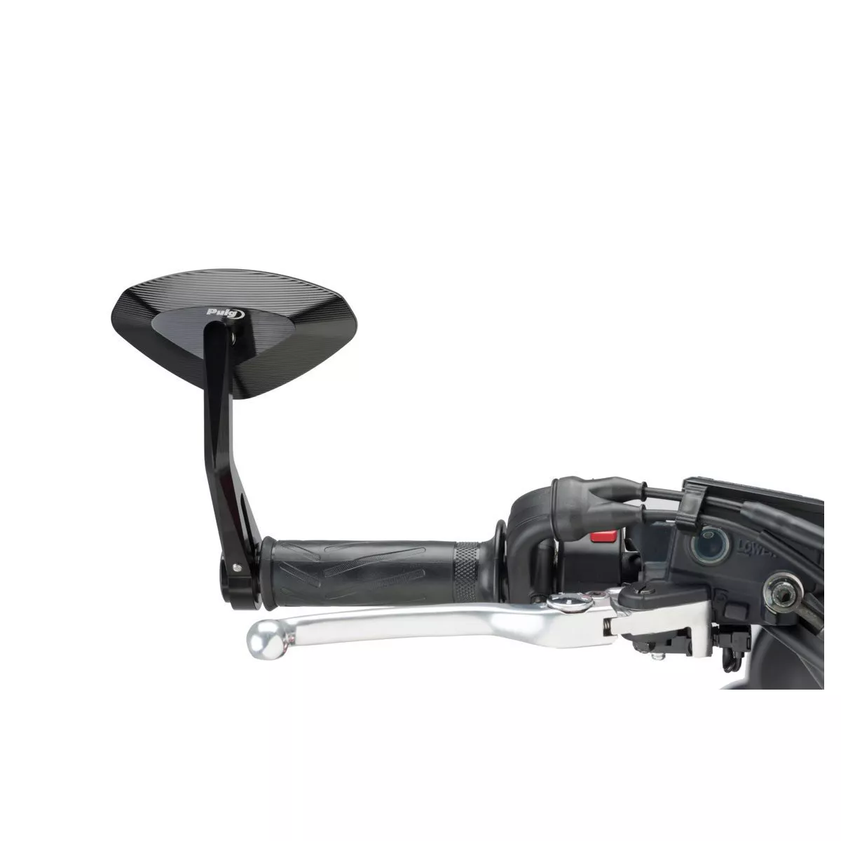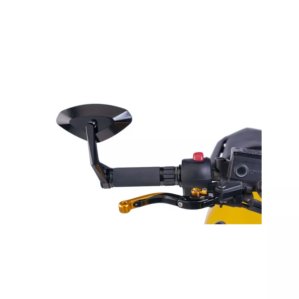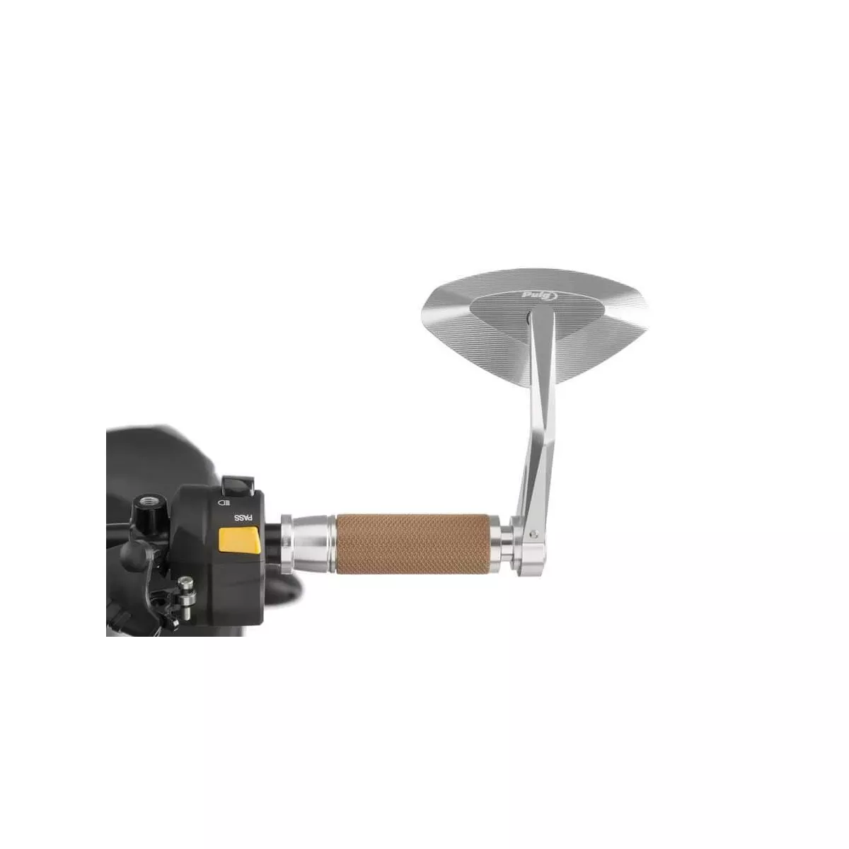 Fabriqué à partir d'un bloc d'aluminium anodisé à l'arrière, ce rétroviseur de la gamme HI-TECH de Puig a la particularité d'être monté sur l’embout de guidon de la moto. Pièce non homologuée.